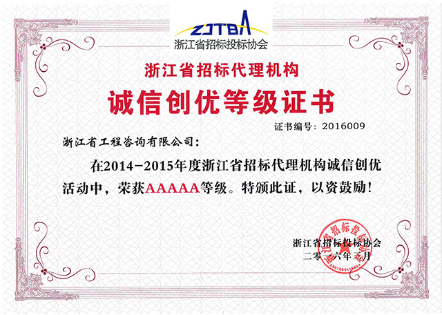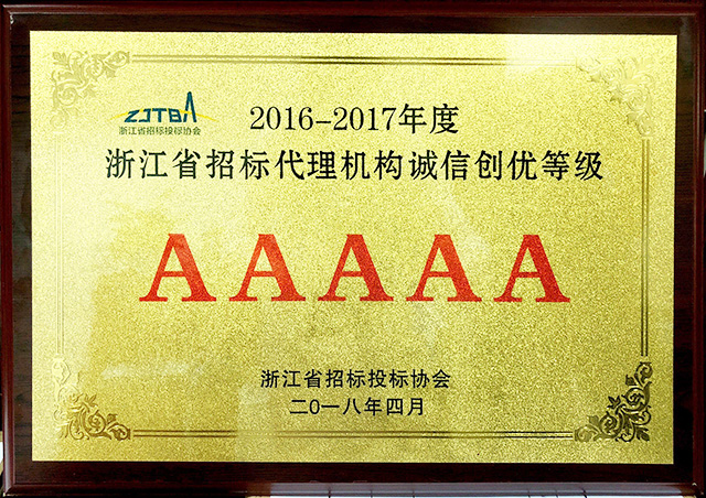 2016-2017年度浙江省招標(biāo)代理機(jī)構(gòu)誠信創(chuàng)優(yōu) AAAAA