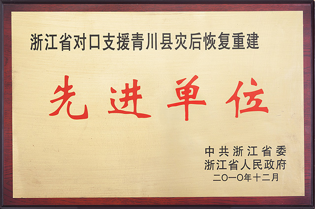 浙江省對口支援青川縣災(zāi)后恢復(fù)重建先進(jìn)單位