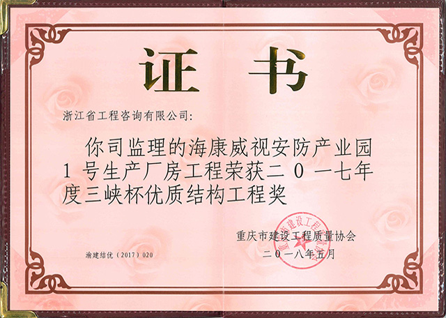 2017年度三峽杯優(yōu)質(zhì)結(jié)構(gòu)工程獎-海康威視安防產(chǎn)業(yè)園1號生產(chǎn)廠房工程