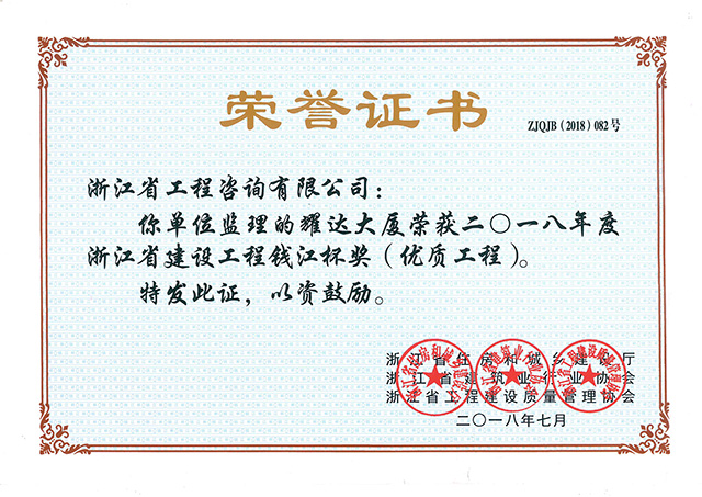 2018年度浙江省建設(shè)工程錢江杯獎(優(yōu)質(zhì)工程)-耀達(dá)大廈
