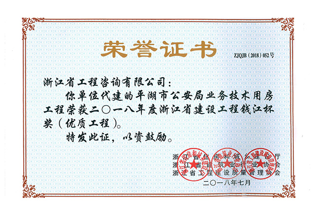 2018年度浙江省建設(shè)工程錢江杯獎(優(yōu)質(zhì)工程)-平湖市公安局業(yè)務(wù)技術(shù)用房工程