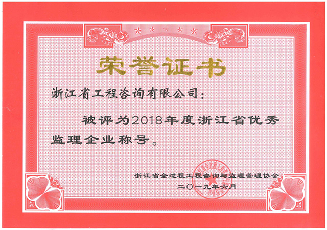 2018年度浙江省優(yōu)秀監(jiān)理企業(yè)