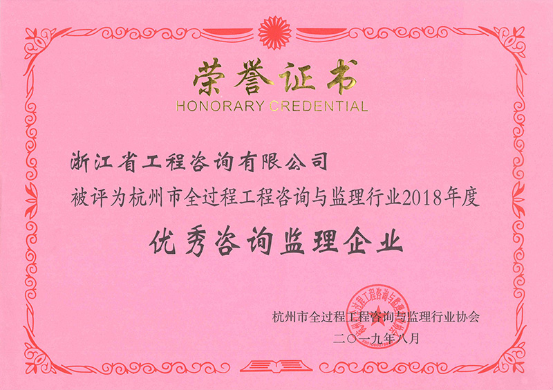杭州市全過程工程咨詢與監(jiān)理行業(yè)2018年度優(yōu)秀咨詢監(jiān)理企業(yè)