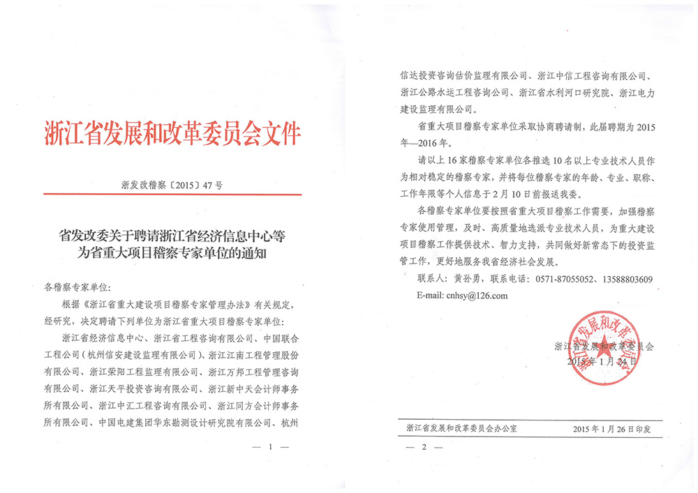 浙江省發(fā)展和改革委員會(huì)咨詢?cè)u(píng)估單位