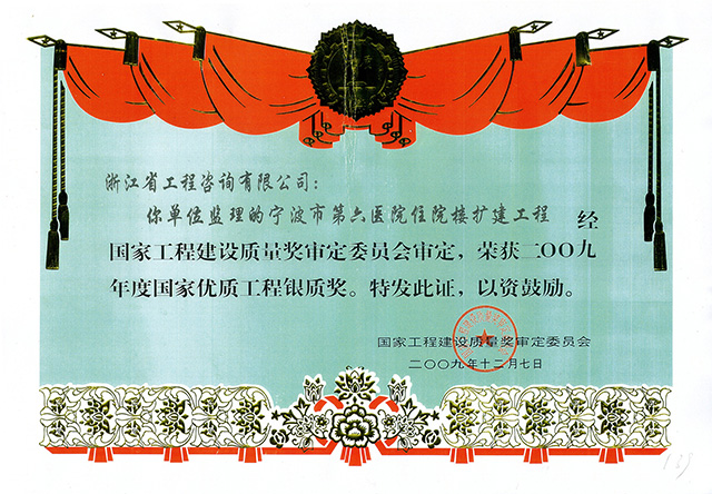 2009年度國家優(yōu)質(zhì)工程銀質(zhì)獎-寧波市第六醫(yī)院住院樓擴(kuò)建工程