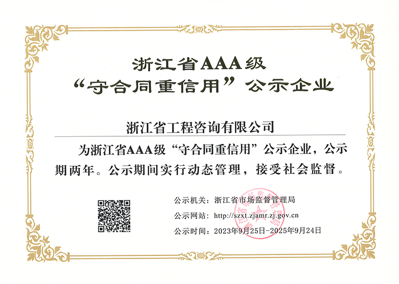 浙江省AAA級“守合同重信用”企業(yè)