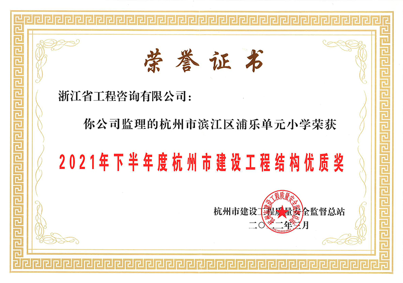 2021年下半年度杭州市建設(shè)工程結(jié)構(gòu)優(yōu)質(zhì)獎-杭州市濱江區(qū)浦樂單元小學(xué)