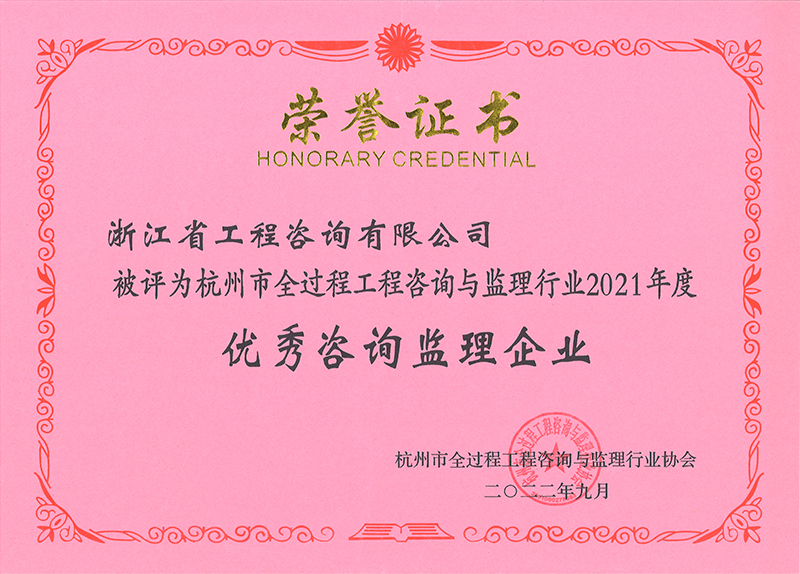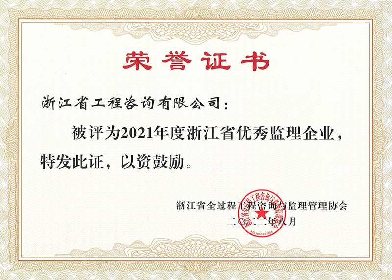 2021年度浙江省優(yōu)秀監(jiān)理企業(yè)