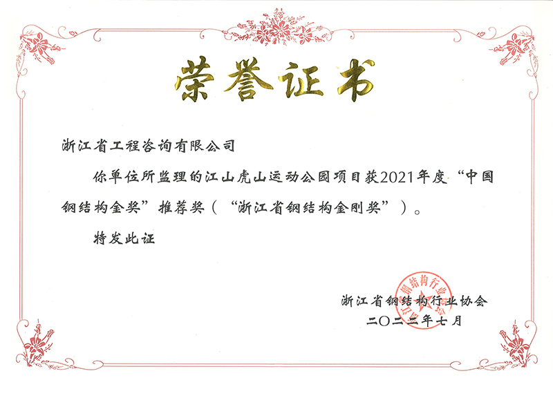 2021年度“中國鋼結(jié)構(gòu)金獎”推薦獎(浙江省鋼結(jié)構(gòu)金剛獎)-江山虎山運(yùn)動公園