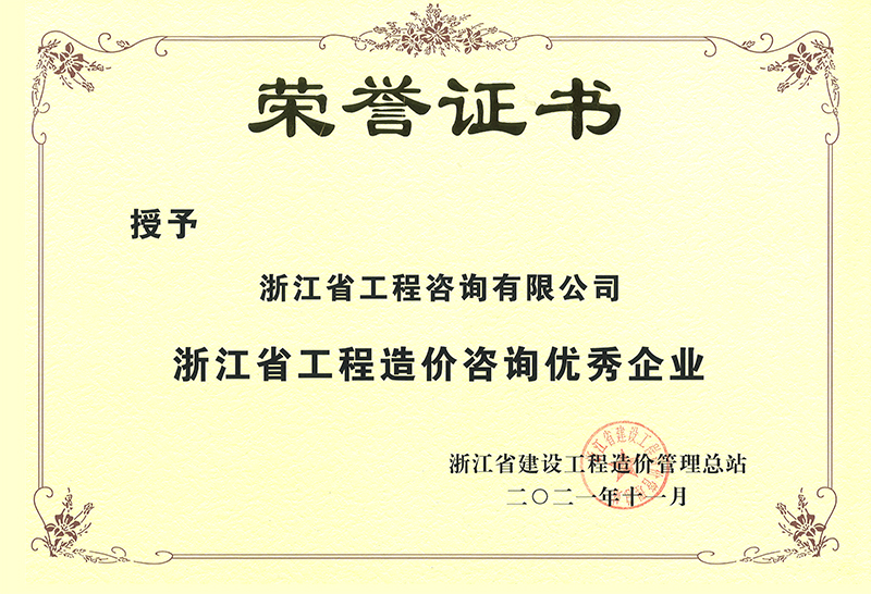 2021年度浙江省工程造價咨詢優(yōu)秀企業(yè)