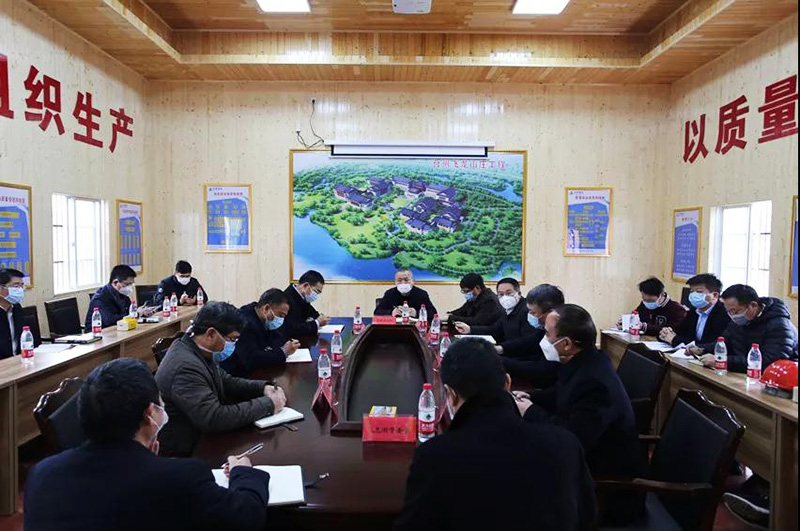 早在2月11日下午,臺州市建設局局長王加潮,副局長厲維軍赴飛龍山莊項目部開展“三服務”活動,現場調研解決項目部在復工工作中遇到的一些困難。飛龍山莊項目作為全市重點工程,在疫情未解除情況下復工,準備工作必須做細、做實,為其他復工項目創造模板、積累經驗。