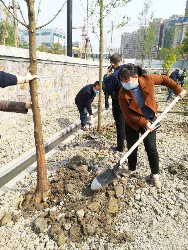 我公司參與本次活動的員工配合默契,齊心協力完成挖坑、施底肥、下苗、填土、壓實土層、苗木澆水等工序,將我公司認建的6株水杉苗一一種下。