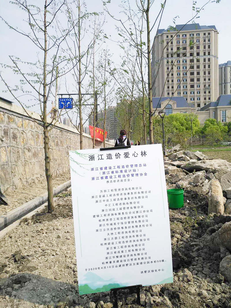 2020年4月10日下午,由浙江省造價總站(浙江省標準站)、浙江省造價管理協會聯合杭州市園林文物局綠化處,在杭州方家埭公園開展綠植認建活動。我公司積極響應,并派出金美青、王卓、沙文倩、徐瑋瑩、王艷榮、歐陽素芬等組成的6人小組參與本次活動,共認建6株水杉。