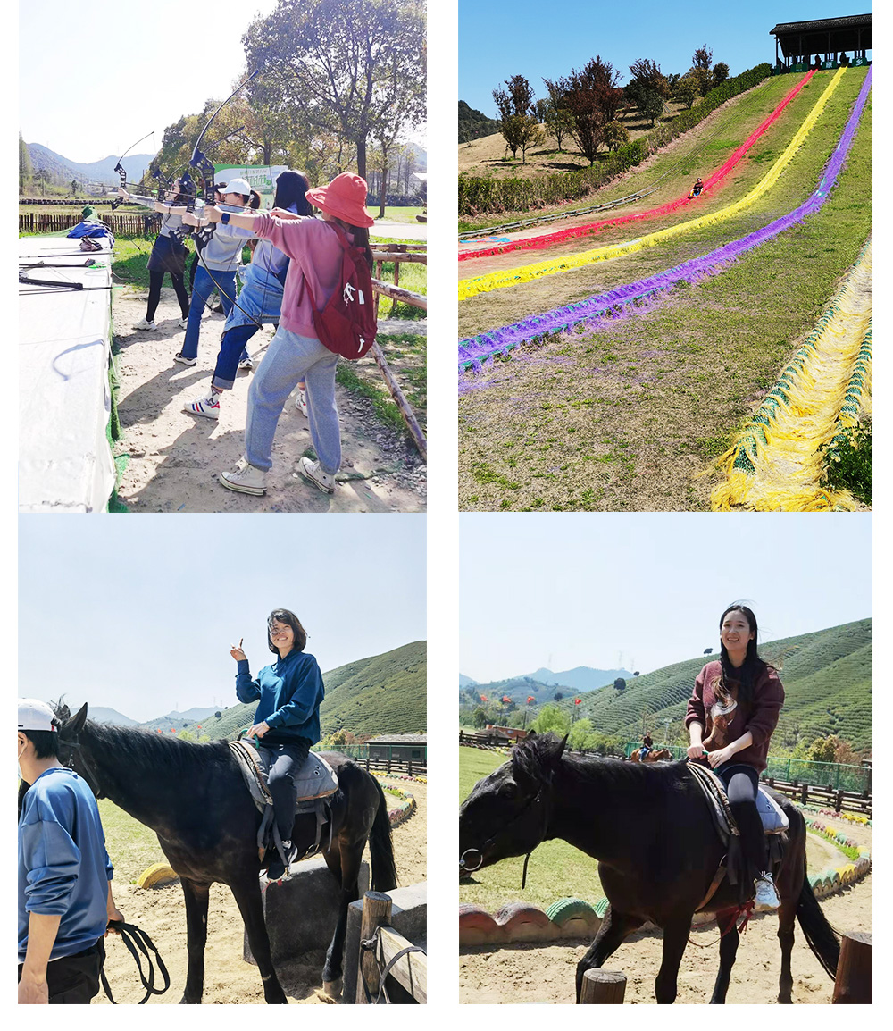 午餐后,大家自由活動,體驗了射箭、騎馬、彩虹滑草、七彩滑道、高空玻璃橋等多個傳統項目,在小鎮里盡情游玩。