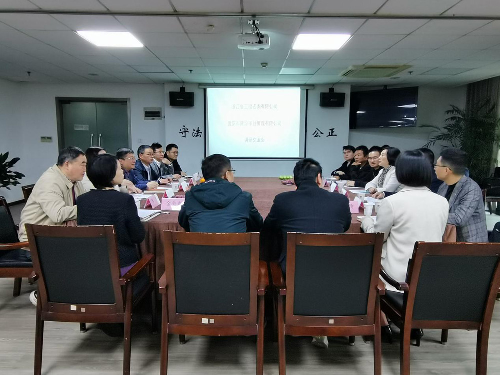 執(zhí)行總經(jīng)理?xiàng)钫芤啊⒗枰阆群髱е亟ü芄竟芾韴F(tuán)隊(duì)參觀了中衡浙江分院和浙江咨詢兩個(gè)辦公環(huán)境,隨后舉行了調(diào)研交流會(huì)。