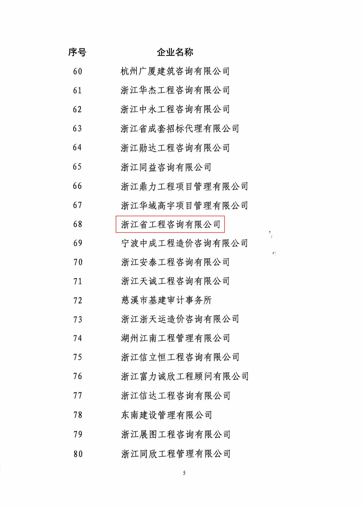 近日,根據(jù)《住房和城鄉(xiāng)建設部辦公廳關于開展2023年工程造價咨詢統(tǒng)計調查的通知》(建辦標函(2023)332號)要求,浙江省組織開展了2023年工程造價咨詢年度統(tǒng)計調查工作,并公布了2023年浙江省工程造價咨詢企業(yè)工程造價咨詢營業(yè)收入2000萬元及以上的規(guī)上企業(yè)名單,我公司在本次公布的2023年浙江省工程造價咨詢規(guī)上企業(yè)名單中。