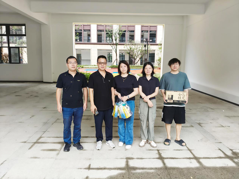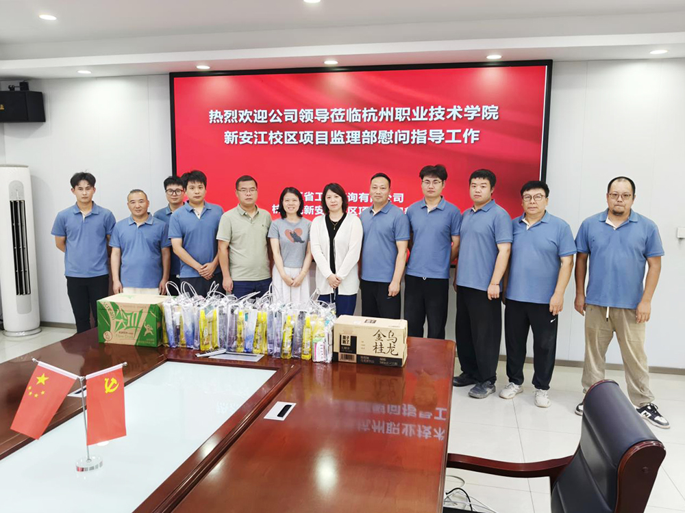慰問團一行先后前往杭州職業技術學院新安江校區建設工程(一期)、之江度假區XH1705-05地塊保障性住房項目、??禉C器人產品產業化基地建設項目監理、浙江特殊教育職業學院天城路校區實訓基地提升改造項目以及小和山單元XH1407-1(C)地塊九年一貫制學校項目進行慰問。每到一處,慰問團都與一線員工細致交流,關切詢問大家的工作進度與生活保障情況,將清涼物資一一送到員工手中,讓堅守者感受到“高溫下的清涼關懷”。
