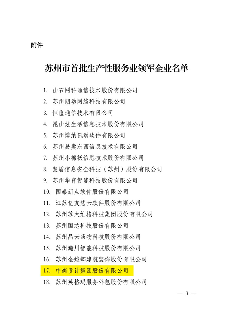 近期,為加快蘇州市生產(chǎn)性服務業(yè)企業(yè)轉型升級步伐,培育打造一批擁有自主品牌、具有區(qū)域影響力的蘇州市生產(chǎn)性服務業(yè)領軍企業(yè),根據(jù)《關于加快培育蘇州市生產(chǎn)性服務業(yè)領軍企業(yè)的若干意見》(蘇府規(guī)字〔2020〕5號),蘇州市政府在信息技術服務、研發(fā)設計、金融服務、檢驗檢測認證、知識產(chǎn)權服務、節(jié)能環(huán)保服務、人力資源服務、現(xiàn)代供應鏈管理、商務服務等九大重點生產(chǎn)性服務業(yè)領域,認定了28家企業(yè)為蘇州市首批生產(chǎn)性服務業(yè)領軍企業(yè),中衡設計集團作為唯一的建筑設計企業(yè)榮列其中。25年來,中衡設計集團及其前身蘇州工業(yè)園區(qū)設計研究院,在蘇州城市建設、尤其蘇州工業(yè)園區(qū)全過程開發(fā)建設中發(fā)揮了重要的作用、貢獻突出,在配合各類招商引資,尤其外資企業(yè)、前沿生物醫(yī)藥類研發(fā)生產(chǎn)企業(yè)等落戶蘇州提供了高標準國際化的設計與咨詢服務。