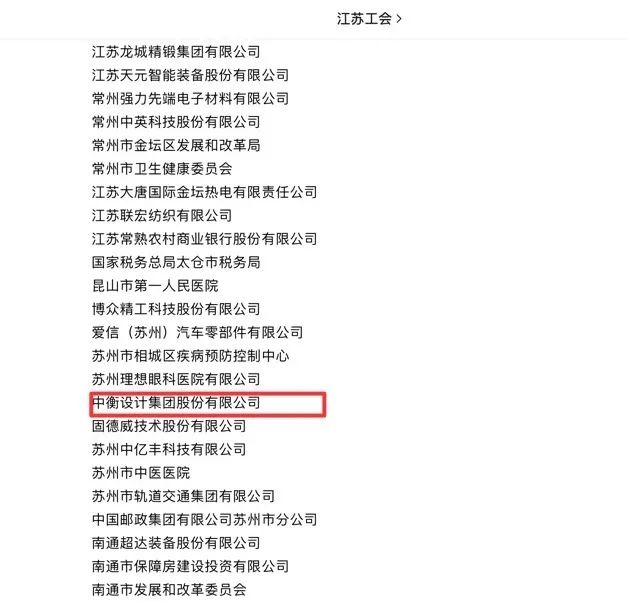 近日,江蘇省總工會授予一批先進集體和先進職工江蘇省五一勞動獎和江蘇省工人先鋒號榮譽稱號(詳見文末“閱讀原文”),中衡設計集團榮獲“江蘇省五一勞動獎狀”。此前,中衡設計已入選第四屆“江蘇民營文化企業30強”,獲得“蘇州市五一勞動獎狀”、“蘇州市文明單位”、“蘇州市勞動關系和諧企業”等榮譽稱號。