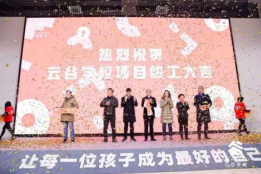 2019年4月10日,乘風破浪啟征程,該項目奠基儀式舉行,馬云與多位董事一起出席奠基儀式,攜手阿里共建杭州云谷學校。