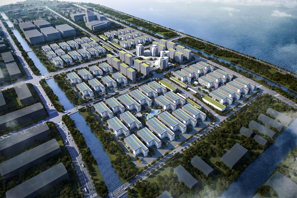 該項目位于溫州甌江口淺灘二期控制性詳細規劃中的A-29、A-31、B-05、B-06、B-07、B-10地塊,地塊北側緊靠甌揚路,南側緊靠甌帆路,西側及東側緊靠規劃河道,雁波北路貫穿整個地塊。本項目總建筑面積約130萬平方米,配備機動車停車位約5000個,總投資約55億元,致力于打造集智能工廠、研發中心、展示中心、倉儲物流、檢驗檢測和后勤配套等多功能于一體現代化智能產業基地。
