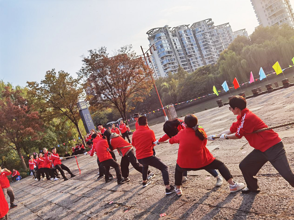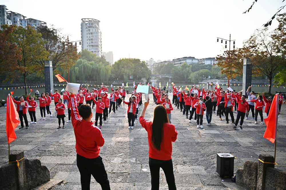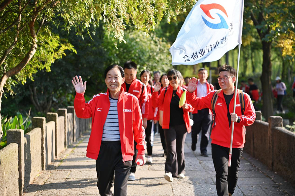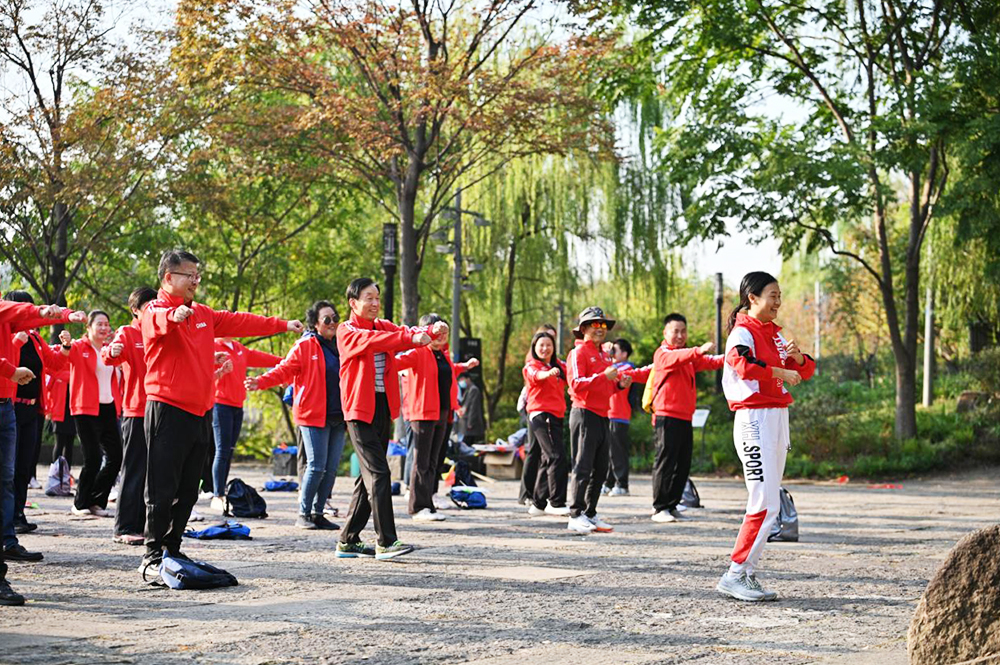 在協會領導的帶領下,大家井然有序,沿著大運河北上,穿過霞灣橋,途經富義倉、大兜路歷史文化街區及青莎公園,沿途沐浴著溫暖的秋日陽光,飽覽千年京杭大運河的風光旖旎,享受著健康運動帶來的身心快樂。在北新關碼頭,大家進行了豐富多彩的團建趣味互動活動。