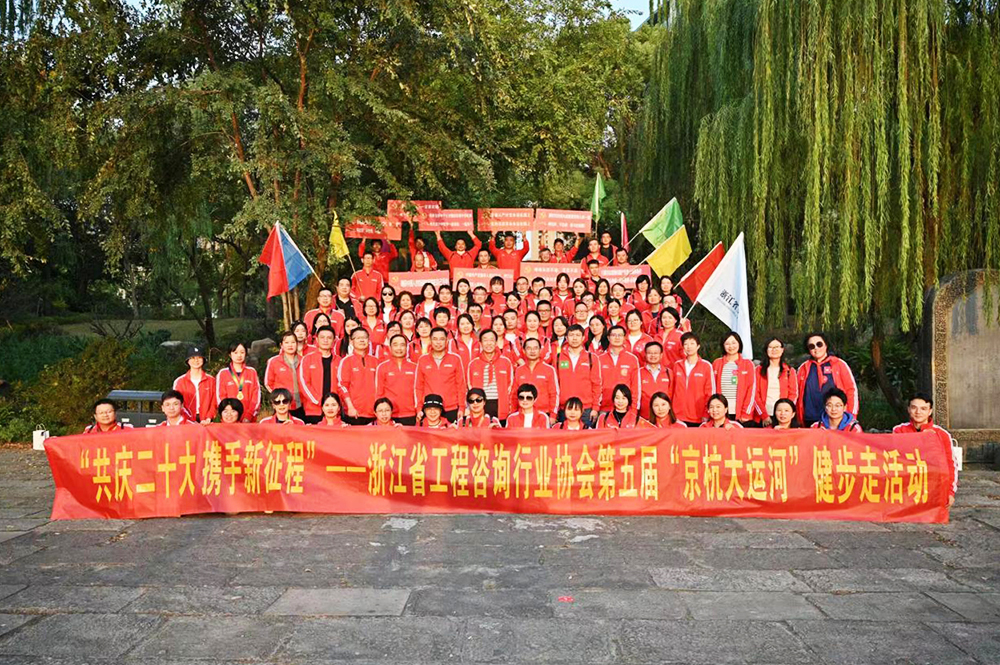 2022年11月7日下午,浙江省工程咨詢行業協會舉辦了第五屆“京杭大運河健步走”活動?;顒佑蓵L劉亭任領隊,駐會副會長桑文力、監事沈軍任副領隊。協會在杭8位副會長及50余家會員單位共百余人參加了本次活動。我公司積極響應,并派出辦公室主任金美青同志,參與本次活動。